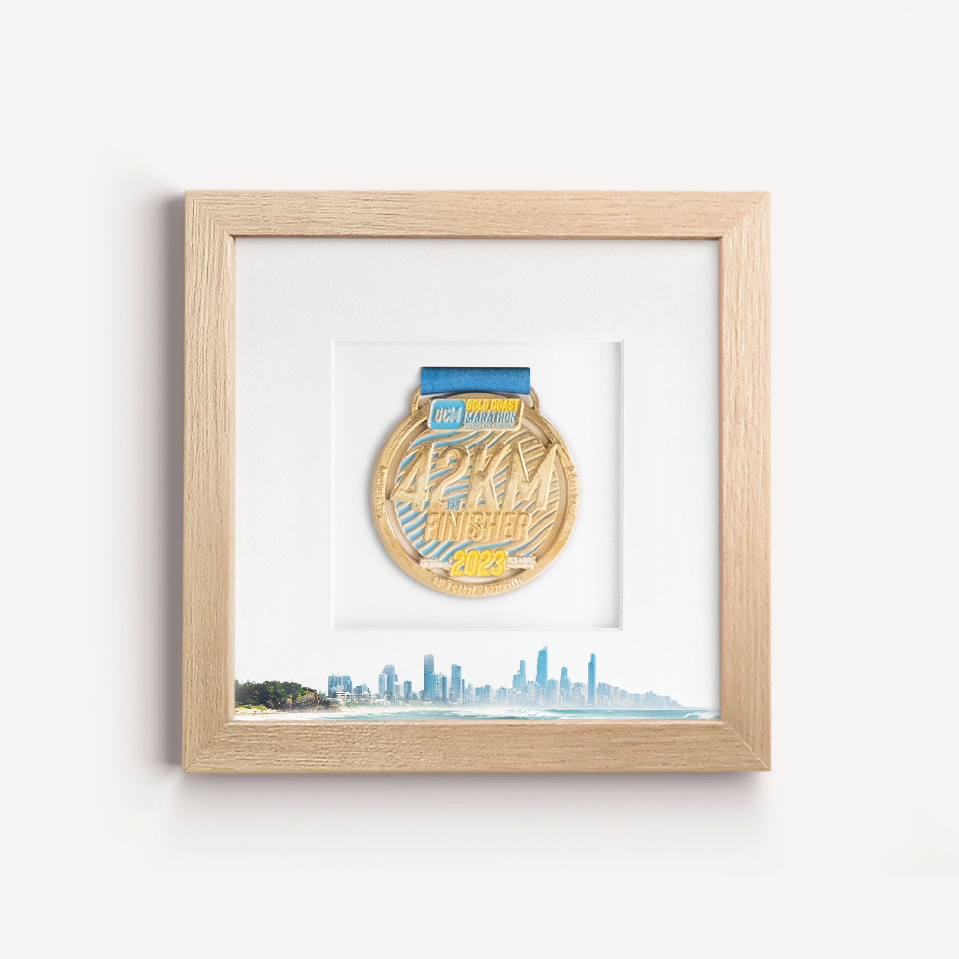 Featuring the jaw-dropping Gold Coast skyline, this frame is designed to showcase medals from any race or endurance event held in this region, across any year. Because your medal already carries official event branding, the frame remains timeless - whether you raced recently or years ago.