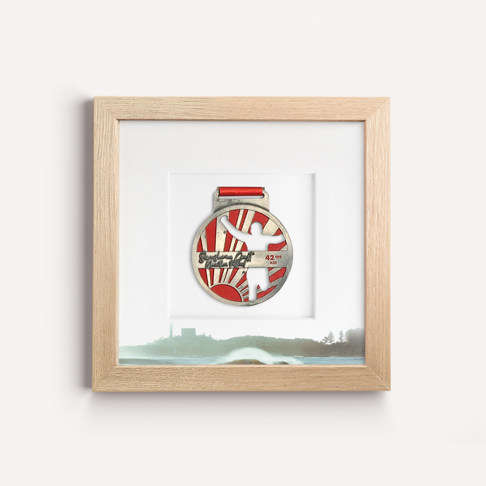 The perfect medal display frame for athletes who have competed in the Sunshine Coast Marathon as well as other major Sunshine Coast-based events such as the IRONMAN 70.3 and Mooloolaba Triathlon.